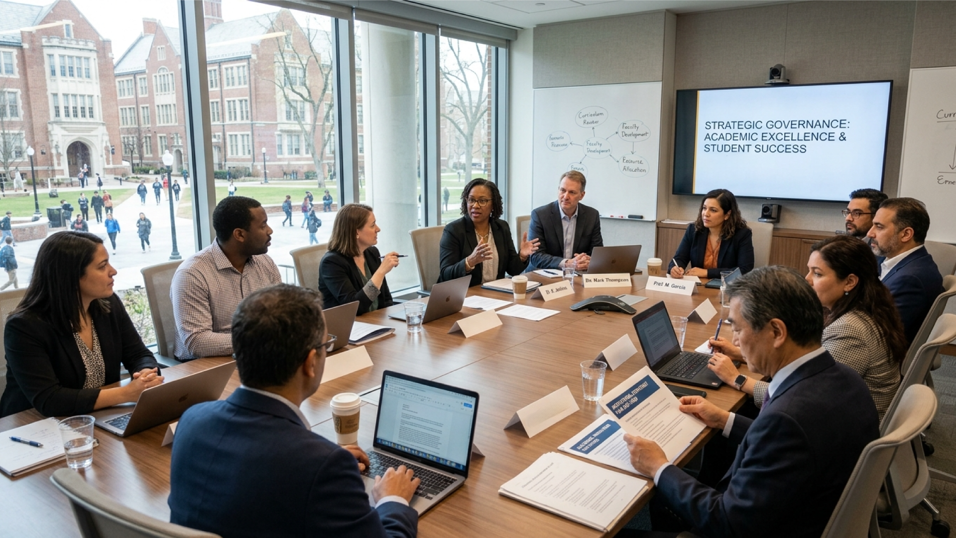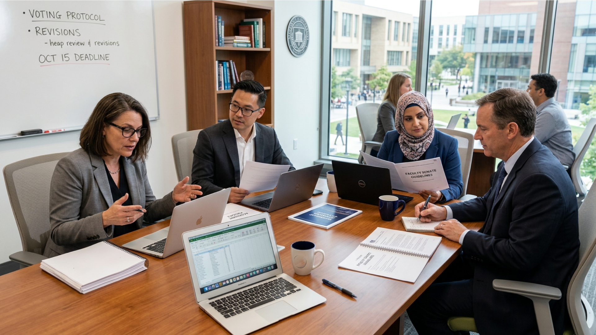 Faculty members collaborating on policy revisions and institutional guidelines.